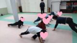 サーキット フープ横ジャンプ、手押し車、クモ歩き、足型ジャンプ