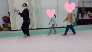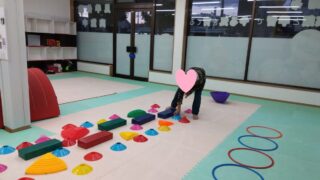 <運動あそび>〇ラジオ体操・ストレッチ〇クマじゃんけん〇サーキット フープジャンプ ⇒ 平均台・カラーストーン(カップボール置き)⇒ 動物歩き(イヌ・ワニ)⇒ トランポリン10回(ポイント着地)〇コロコロドッジボール 今日も、元気いっぱい活...