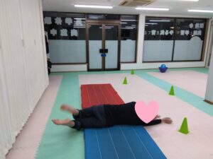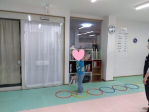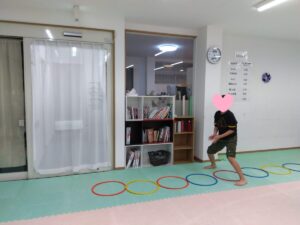 〇サーキット フープ(リズムジャンプ)⇒ボールドリブル・パスキャッチ⇒S字ポックリ⇒マット(じゃがいも・さつまいも)