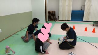 こんにちは(*^-^*)こどもプラス新町教室です。今日もお友達が来てくれました✨<運動あそび>〇ラジオ体操〇フープポイントジャンプ〇大縄走り抜け→動物まね〇パンケーキサーキット(カップ持ってフープグーパー→トランポリン10回→マットさつまい...